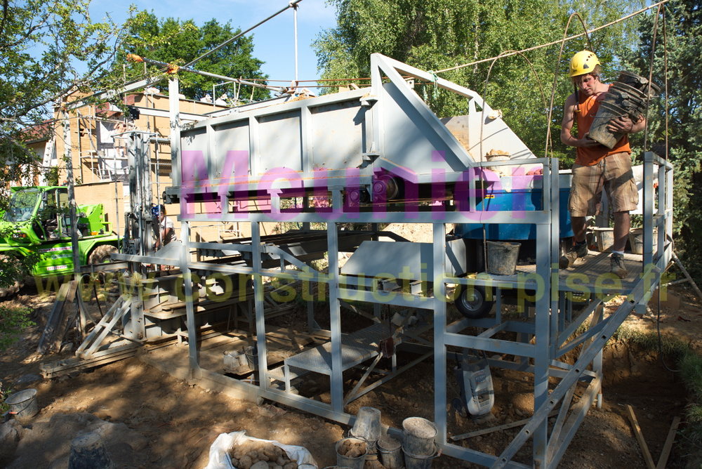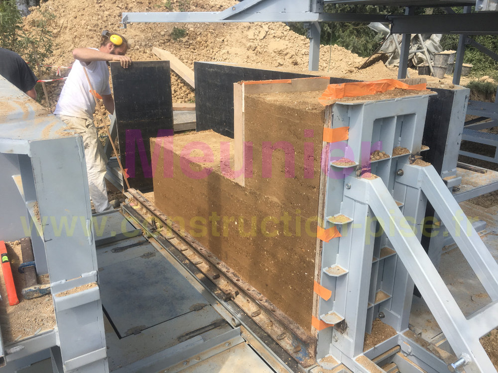 Réalisation en pisé préfabriqué porteur d’un agrandissement de conception traditionnelle permettant la première utilisation de notre nouvel outil : une station de préfabrication foraine.